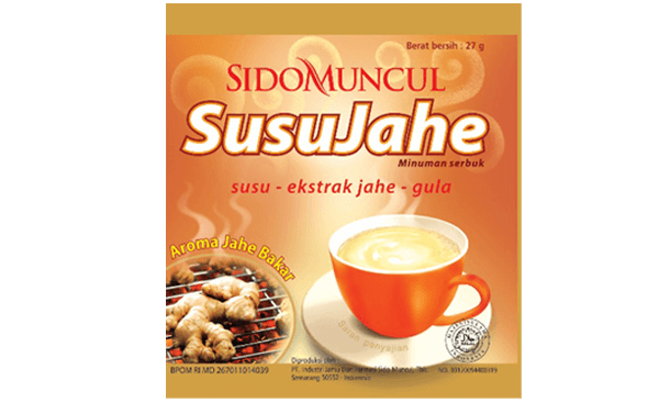 Susu Jahe Sido Muncul yang memadukan susu gurih, gula aren, dan jahe emprit bakar geprek yang memberikan kehangatan serta meningkatkan daya tahan tubuh. Dengan kenikmatan aroma jahe bakar yang khas dan tersedia dalam rasa vanila dan coklat swiss.